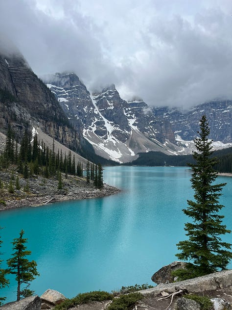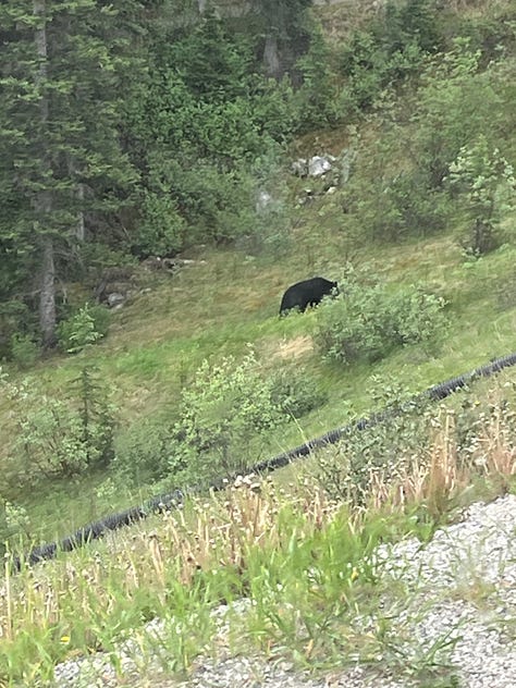 In un solo meraviglioso giorno ho visto laghi talmente azzurri da fare male agli occhi (niente filtri, il colore é davvero quello!), foreste a perdita d’occhio, un orso (da lontano 😅), un baby elk (che ho scoperto non essere un’alce, come erroneamente credevo -che invece in inglese è moose- ma un’altra bestia, chiamata anche wapiti), un istrice, una marmotta, una baldveagle e un numero incalcolabile di scoiattoli di tutti i colori. Mi sono considerata sempre un’anima più marittima che montana, ma devo dire che questi paesaggi hanno un po’ incrinato le mie certezze. Avrei voluto poter rimanere lì per delle settimane.